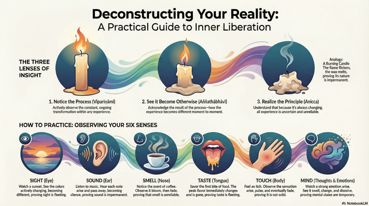Anicca (The Overarching Principle: Uncertainty): The fundamental truth of the candle flame is that it is unreliable and will not last. Its existence is uncertain, conditional, and temporary. It cannot be trusted as a permanent source of light.